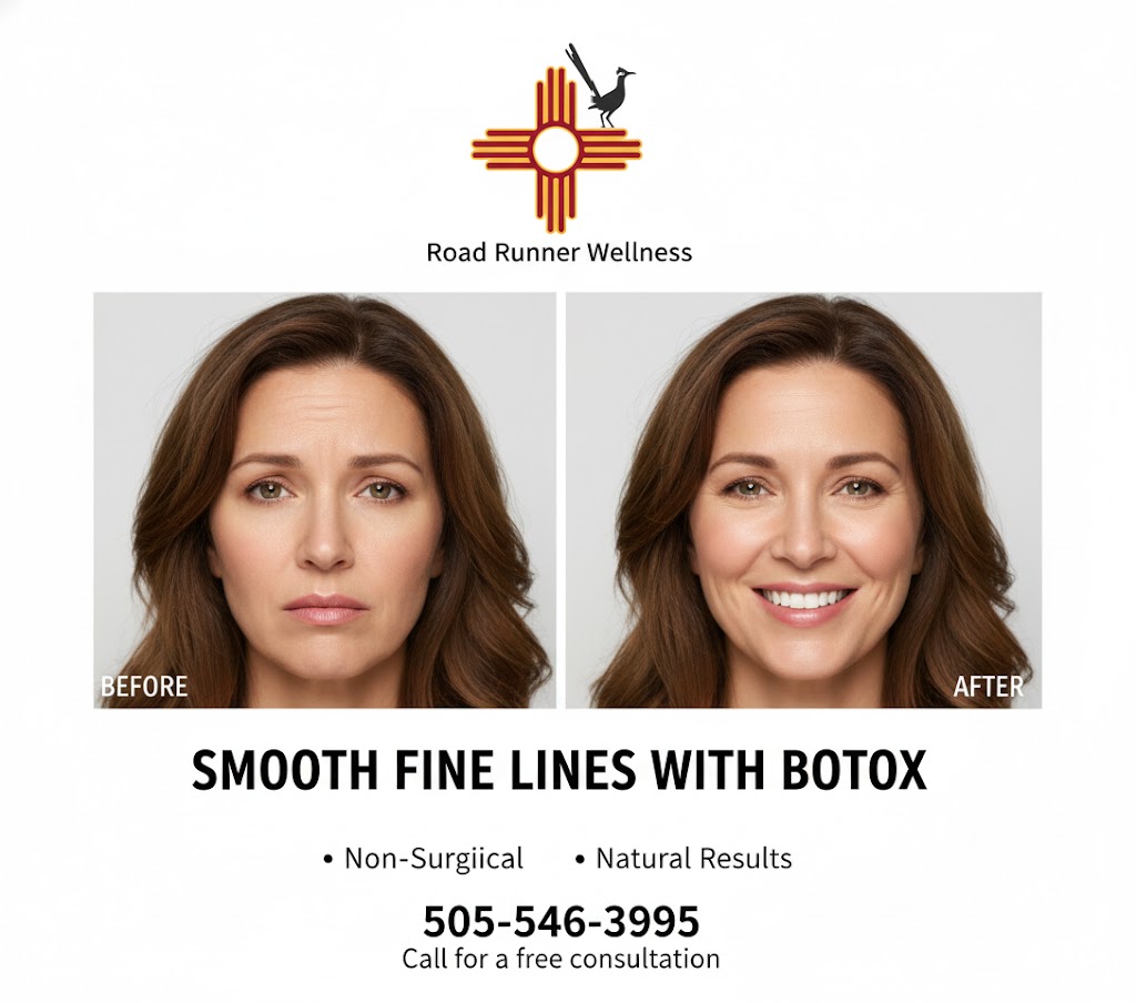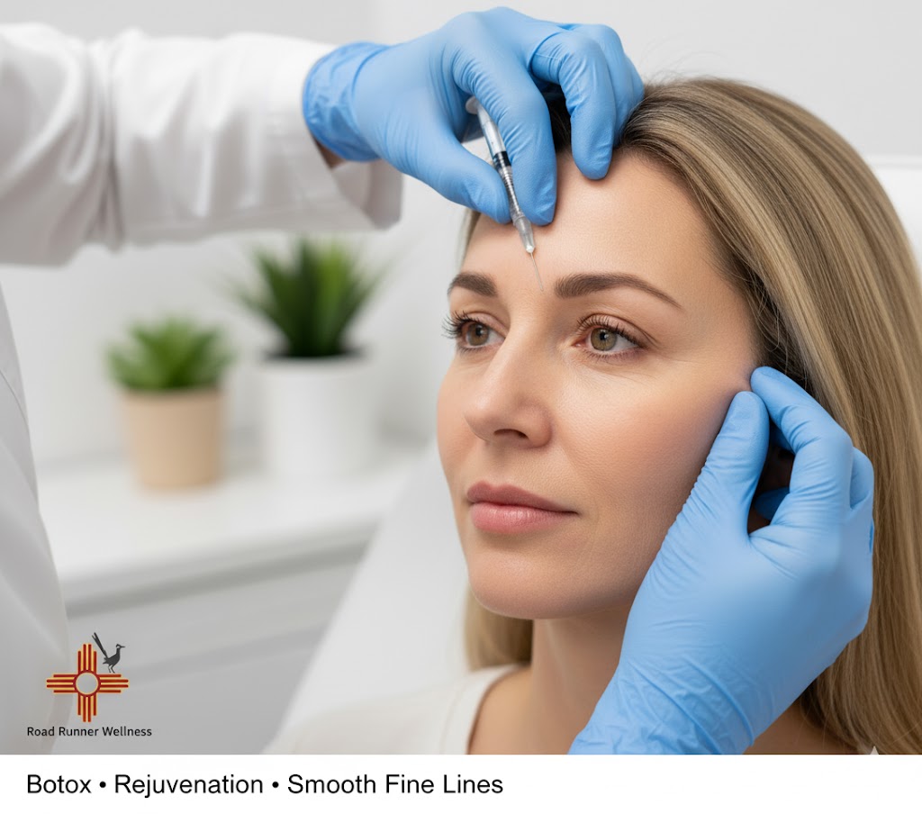 Looking for a way to smooth out those wrinkles and bring back your youthful glow? Road Runner Wellness in Albuquerque, NM, has got you covered. With our certified nurse practitioner, you're in great hands. We offer flexible scheduling, in-home services, and even Botox parties! Whether it's crow's feet, forehead lines, or a lip flip, we have the solution you need. Our treatments include: