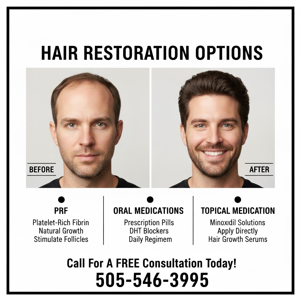 PRF) with conventional oral and topical medications creates the most comprehensive approach to non-surgical hair restoration, as it tackles hair loss from three complementary angles: